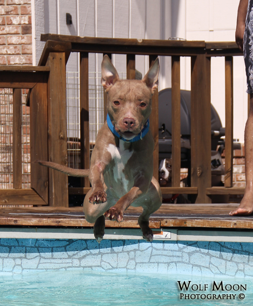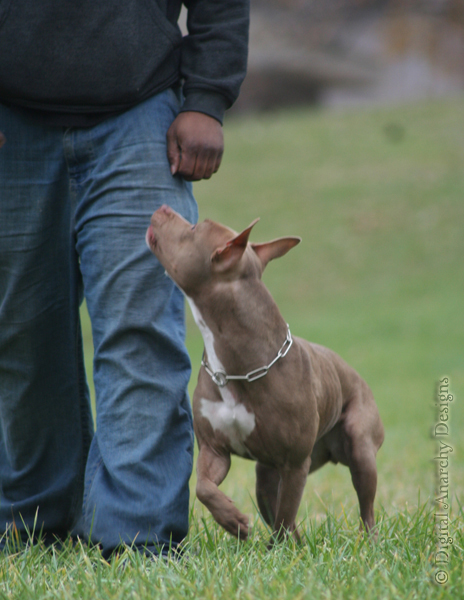Mika was born on July 18, 2010 to Howard's Working APBTs. We picked her up at fourteen weeks of age and it was love at first sight. The little miss picked out Bruce and though we'd gone with the intention of rearing her and socializing her, she never left our house. She reminded us so much of our Luna-Tuna that she earned her name - "Mika". Mika actually means "new moon" in Japanese and since her registered name is a take off from one of Bruce's favorite anime shows, it was only fitting that her name be Japanese.