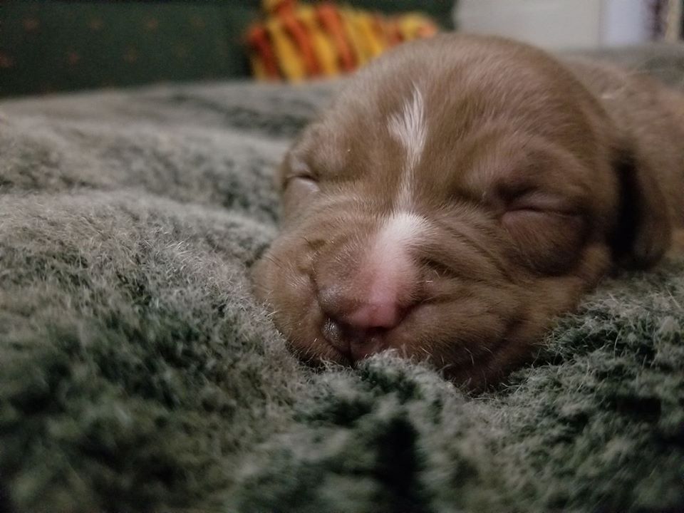 Singleton whelped on May 24, 2018 via c-section at 8:30pm. Titan weighed 311.84 grams at birth.